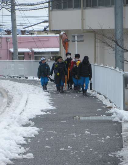 2時間遅れで、子どもたちは、除雪された通学路を歩いて、無事登校してきました。