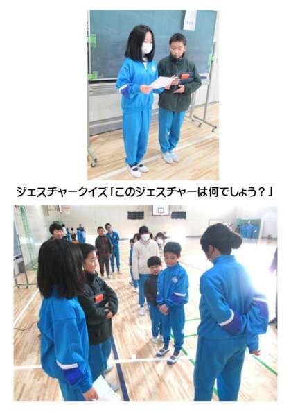 2月7日(水) 全校オリエンテーリング(2) 公開日 2024/02/07 更新日 2024/02/07 できごと 5年生のクイズの出題の仕方がとても上手で、盛り上がりました。どのクイズもとっても楽しくて、みんな6年生と一緒に「笑顔いっぱい」でした。