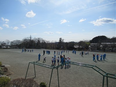 今日は、2月とは思えないくらいの「ぽかぽか陽気」でした。20分休みの校庭では、全校児童と先生方が一緒になって長縄跳びをしていました。次の体育集会で、体育委員会主催の「たてわり班対抗長縄跳び大会」が行われるため、それに向けてみんなで練習をしていたのです。