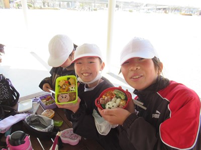 3月7日(木) 3年生の社会科見学(15)待ちに待ったお弁当 公開日 2024/03/08 更新日 2024/03/08 できごと 群馬県庁の見学を終え、前橋公園で待ちに待ったお弁当を食べました。お家の方に作ってもらったお弁当を嬉しそうに眺め、友達と一緒に食べるお弁当を楽しんでいました。