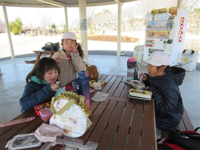 3月7日(木) 3年生の社会科見学(16)前橋公園でお弁当