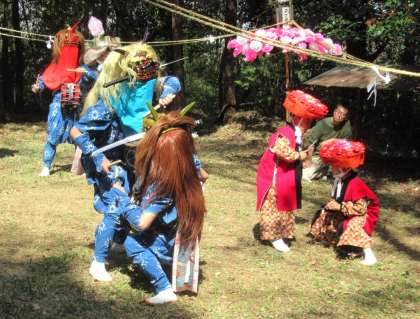 「剣の舞」です。2頭の獅子と2人のカンカチが向き合い、勇ましく踊りました。