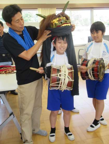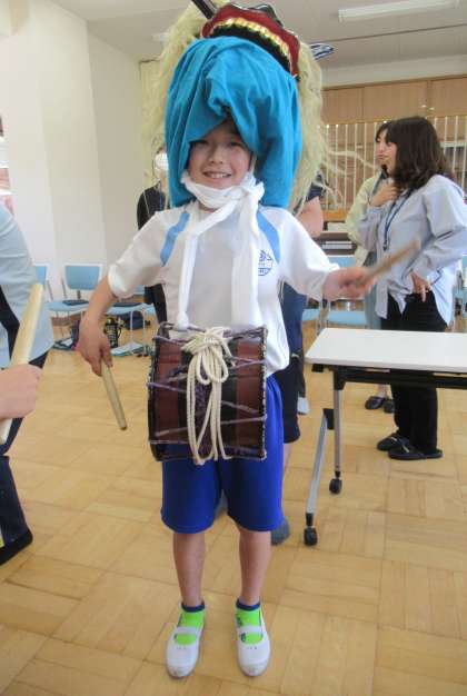 獅子頭をつけてみました。みんなカッコいいです!
