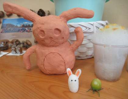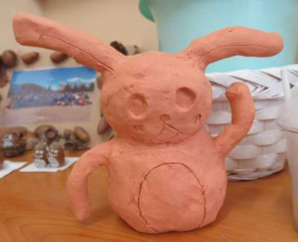 (写真上)なんと「西うさぴょんの埴輪」です!6年生が土器づくりの際に作ったそうです。しっかり焼き上がっています。学校の宝にします!