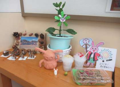 昨日(9日)の学校ホームページで紹介した「西うさぴょん夏祭り」に、1日たって新しい仲間が加わりました。かわいくて、思わず笑ってしまいます。