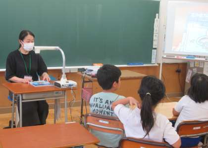 7月11日(木) 読み聞かせ(3年生) 公開日 2024/07/11 更新日 2024/07/11 できごと 3年生の教室では、2人のボランティアさんに読み聞かせをしていただきました。子どもたちは絵本の挿絵を食い入るように見つめながら、読み聞かせを楽しんでいました。