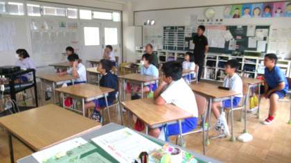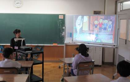 7月11日(木) 読み聞かせ(5年生) 公開日 2024/07/11 更新日 2024/07/11 できごと 5年生は、2人のボランティアさんに読み聞かせをしていただきました。子どもたちは、ホワイトボードに映し出される絵本の挿絵を見つめ、お話の世界に聞き入っていました。