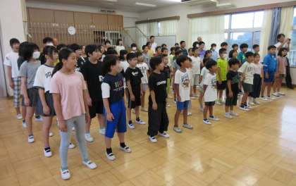 8月29日(木) 2学期始業式(1) 公開日 2024/08/29 更新日 2024/08/29 できごと 2学期始業式を行いました。教頭先生の開式のことばに続き、校歌斉唱です。夏休み明けとは思えないほど、いい声が出ていました。