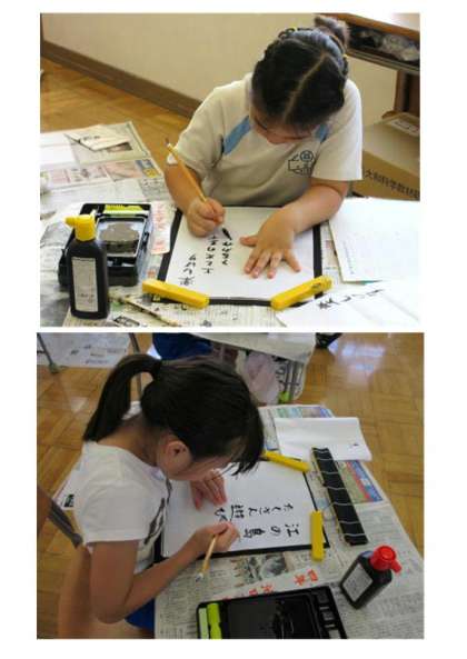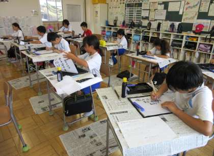 9月5日(木) 4年生の書写 公開日 2024/09/05 更新日 2024/09/05 できごと 4年生の書写では、めあて「夏の思い出を俳句にして書こう」に取り組んでいました。子どもたちの夏の楽しかった思い出が、小筆によって半紙に書かれ、風情ある書の作品となりました。