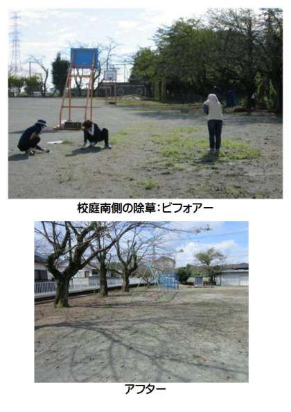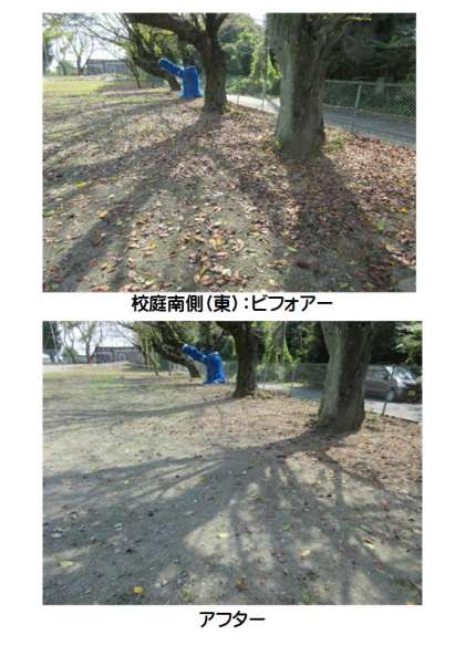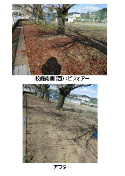 校庭南側の作業の様子です。細かい草取りや落ち葉をきれいにしていただきました。