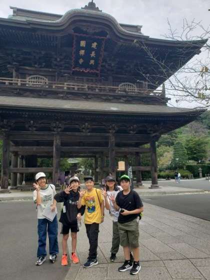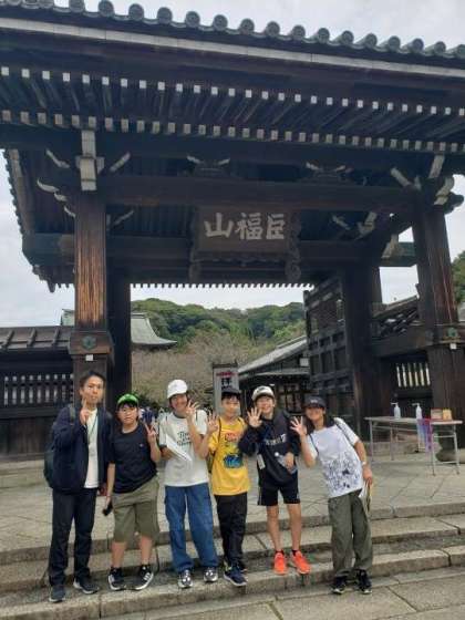A班の様子です。三門と総門で記念写真です。