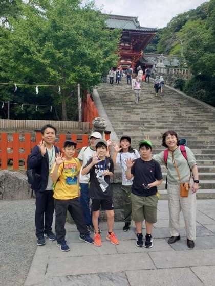 10月16日(水) 修学旅行「鶴岡八幡宮にて」 公開日 2024/10/16 更新日 2024/10/16 できごと A班、鶴岡八幡宮に予定通り11時57分に到着しました。担任とおみくじの話題で盛り上がっています。担任が引いたおみくじの結果はいかに…。