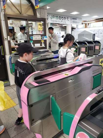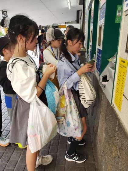 B班が、予定の1本前の14時14分発の江ノ電に乗りました。