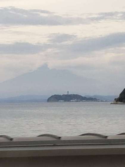10月16日(水) 修学旅行「江ノ島、富士山」 公開日 2024/10/16 更新日 2024/10/16 できごと 鎌倉大仏高徳院をバスに乗りホテルに向けて出発しました。バスの車窓から江ノ島と富士山が見えます。