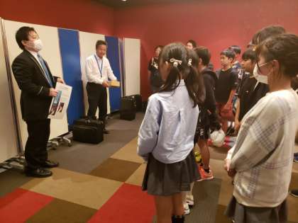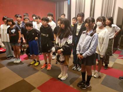 10月16日(水) 修学旅行「ホテル到着式」 公開日 2024/10/16 更新日 2024/10/16 できごと ホテルに到着して、ホテル内の説明を聞いています。最高級ホテルに子どもたち、ドキドキワクワクです。