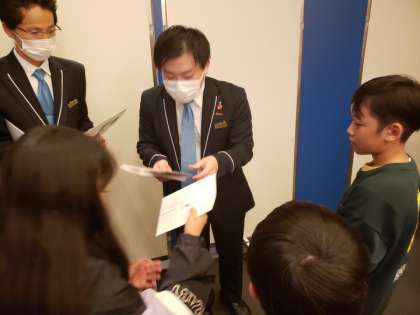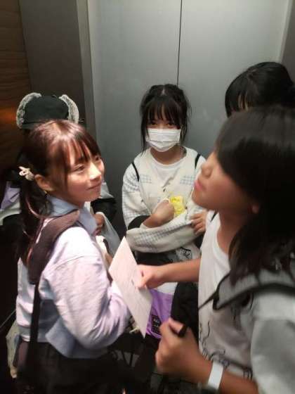 10月16日(水) 修学旅行「部屋のカードキーを受け取りました」 公開日 2024/10/16 更新日 2024/10/16 できごと 女子も部屋のカードキーを受け取って、エレベーターで部屋に向かいます。11階です。