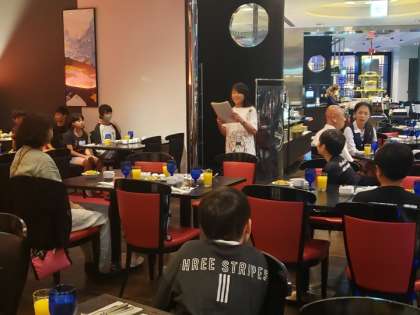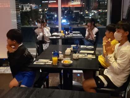 美九里西小の児童の合図で、ホテルディナータイムのスタートです。 「いただきます」
