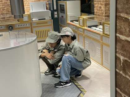 石鹸が作られる工程を学んでいます。