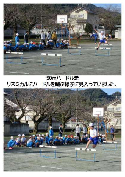 続いて、50mハードル走、ソフトボール投げのデモンストレーションです。