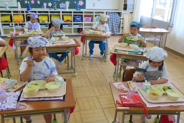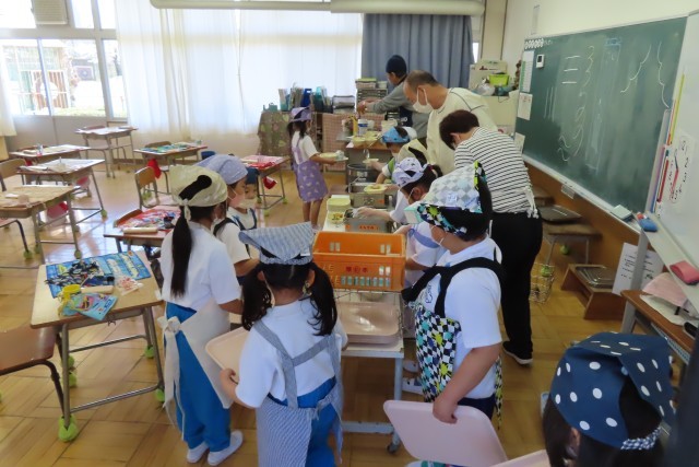給食2日目。今日はご飯なので盛り付けは配膳が昨日よりも大変です。さらに都合により6年生のお手伝いはありませんでした。でも、さっすが1年生です。昨日に引き続き、今日もどんどん自分でできました。4時間目が体育、メニューがお祝いモードでしたので、喜んでモリモリ食べていました。給食をこうしてしっかり食べられる子は体力も学力もどんどん伸びていくこと間違いなし!です。