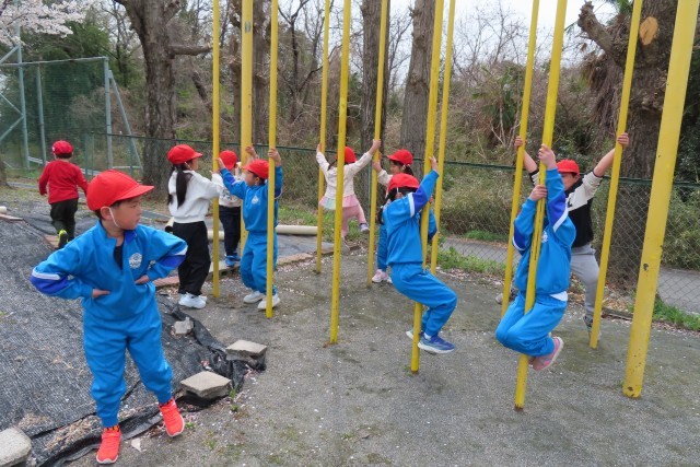 学校たんけんをしました。校庭では、様々な遊具の使い方など、ケガなく、仲良く、安全に過ごせるようにすることが大切です。先生の話すことをよく聴いていました。まだまだ乗り越えるには大きなタイヤ、ちょっと怖くてあがれないジャングルジム、自分の身長より高い鉄棒。この6年間でそれらが楽しめるようになるほどの成長が楽しみな1年生です。