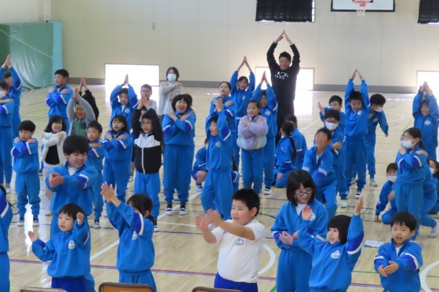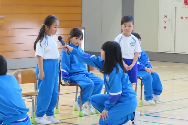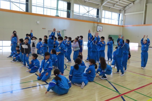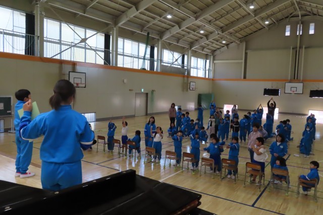 「みんなであそぼう!」の企画では、全校みんなで「3時のおやつ」を楽しみました。みんな笑顔いっぱいです。こうして、学年を問わずみんなで楽しく遊ぶことができるのが、この美九里西小学校の自慢です。