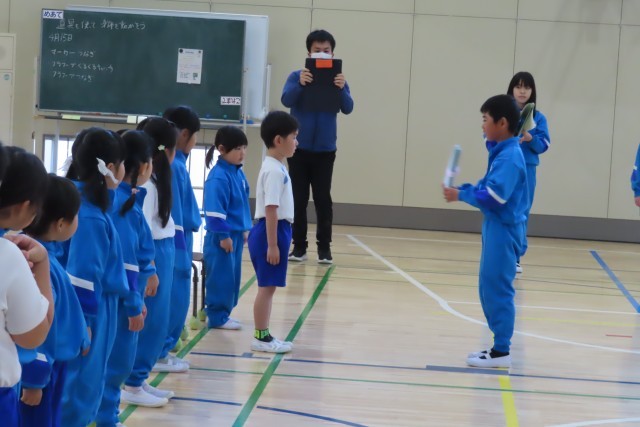 1年生へのプレゼントがありました。一つ目は、5年生から校歌の歌詞(手作りのもの)です。このあと1年生はこの5年生からのプレゼントを手に、校歌を覚えます。そして2~6年生から校歌のプレゼントがありました。1年生は一日も早く、この校歌を覚えて、みんなで元気にうたいましょうね。