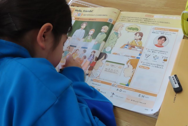 Unit 1 Hello, friends! 「ここでは」名前やつづり、好きなもの(こと)についてのやり取りができるようになります。もうよく知っている友達ですが、英語を使ってさらに新たな友達の情報を得られるとよいですね。今日は教科書の映像を見て、そのおおまかな内容を聞き取っていました。大事なポイントとなる英語を聞き取ることができれば相手の伝えたいメッセージを理解することができます。そんなことを実感しながら学んでいけるとよいです。