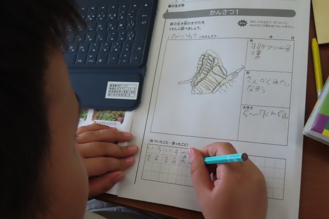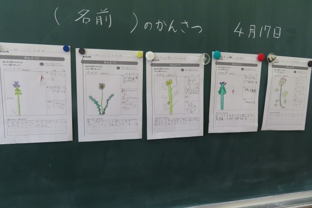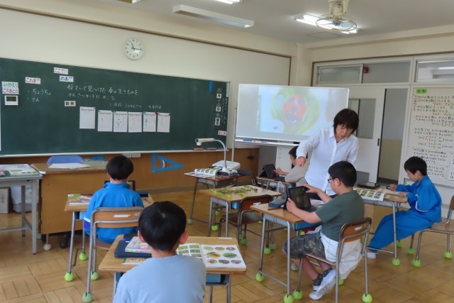 3年生にとっては、はじめての理科の学習です。「ここでは」春を迎えて目にする植物や動物などの生き物を観察して、その姿について記録します。「これまで」2年生のとき、育てた植物を観察してきたときのポイントがしっかり生かされています。さらに虫眼鏡の安全な使い方も学んでいます。「このあと」どんどん身の回りの生き物に関心をもって、知りたいな!調べてみたいな!が増えてくるとよいです。