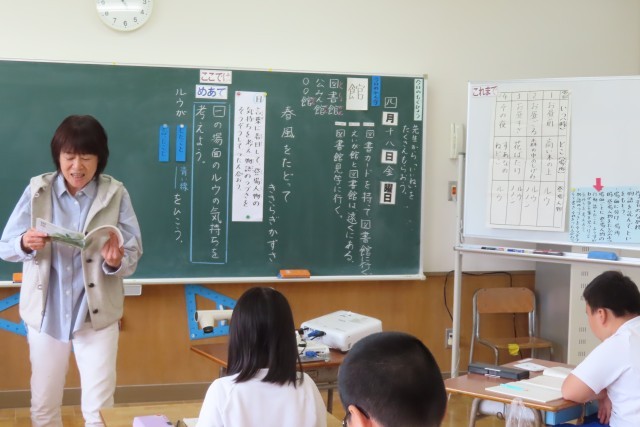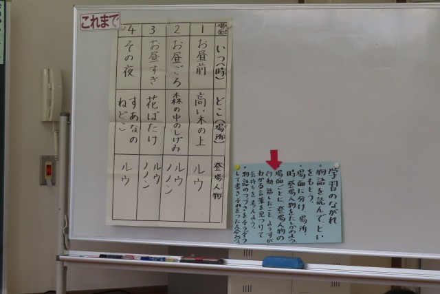 「春風をたどって」の学習中です。今日は1の場面のルウの気持ちを考えていました。「ここでは」登場人物の気持ちや行動、場面の様子を表す言葉に着目して登場人物の様子を考えながら物語を読みます。「このあとは」たくさんの物語と出会ったときに、こうして言葉に着目して読むことを楽しんでほしいです。