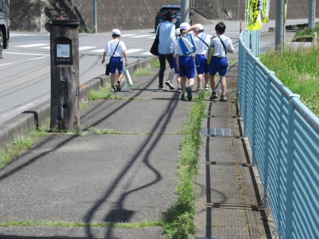 今日の3、4時間目に社会科「学校のまわりには何があるかな」実際に「まちたんけん」をしました。よく知っている地域だけど、友達とこうして一緒に歩いて、見て、調べてみると、きっといろいろな発見があることでしょう。今日は宿神田、保美コースを、明後日は三本木、矢場コースです。今日は先週よりも気温が上がり、少し暑かったので、途中休憩を入れて、水分補給をしながら、みんなで安全にまちたんけんをしました。