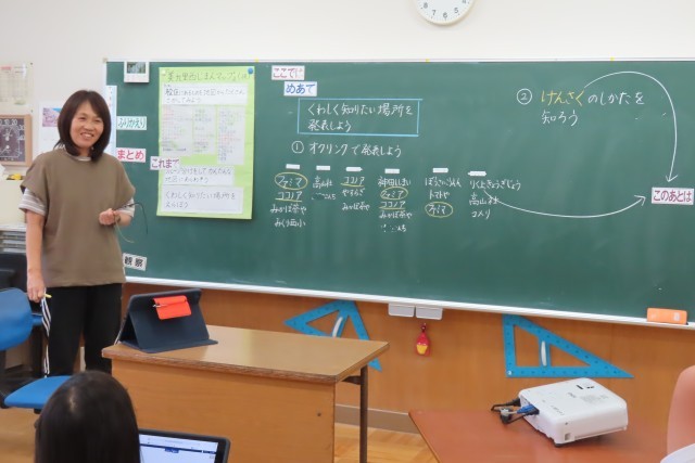 ますますこの美九里西地区のことが好きになります。社会科では、現在、まちたんけんをして地域のことを調べ学習しています。2つの学習がつながっているので、どんどん美九里西地域のことを詳しく知ることができます。ちょうど教室では、調べてみたい場所の「調べ方」を学んでいました。数多くある情報の中から本当に必要で、正しい情報をどうやって自分の学習に生かしていくかはとても大切です。