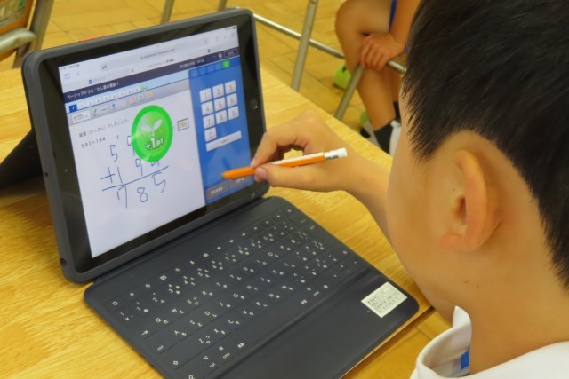 今日のめあては「ひっ算名人目ざしてがんばろう」です。たし算とひき算の筆算の学習のまとめとして、今日はたくさんの問題にチャレンジしました。教科書の他、タブレット上にもたくさんの問題があります。どんどん自分のペースで正解が出るまでチャレンジします。「正解!」ピンポン!の音が鳴るとうれしくて、もっともっとやる気がでてきます。
