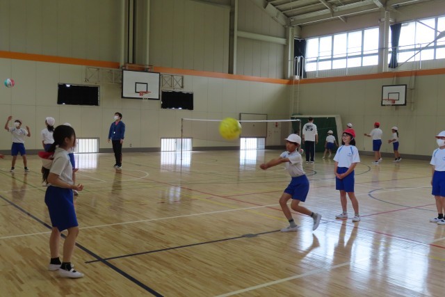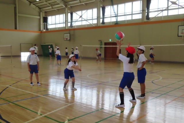 ソフトバレーボールが始まりました。腕だけではなく、全身を使って、仲間のところに正確にパスしようとみんなよく頑張っていました。お互いに声をかけあいながら、相手のことを考えながらパスをしていました。