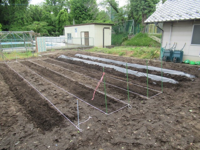 2年生は生活科で畑作りに取り組みました。畝を整え、マルチをかぶせ、風で飛ばないように土で押さえました。みんな頑張って作業をし、サツマイモや野菜を植える準備ができました。野菜は12日(月)に植える予定です。今から楽しみです。