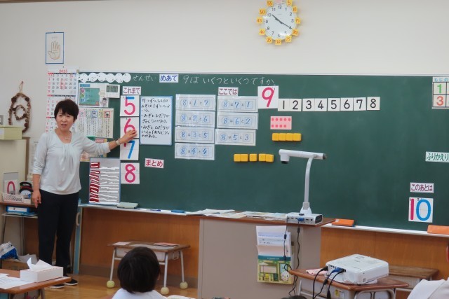 算数「いくつといくつ」今日は「9」について考えました。これまで学習してきたことから、いくつかのことに気付きました。「1つずつふえると、みぎは1ずつへる」「みぎとひだりが ぎゃくなのがある」など。そんな気付きが「ここでは」学習する9でもあるのかな?と考えると、今日の学習がワクワク楽しみになってきます。