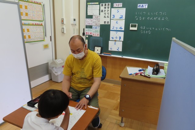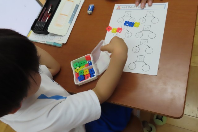 1年生が1時間目に国語、2時間目に算数を頑張りました。算数では「いくつといくつ」の学習のまとめで、いろいろな数字について、先生から出された問題におはじきを使って丁寧に考えていました。先生が「よくできているよ。じゅんちょうだね」とたくさんほめてくれました。