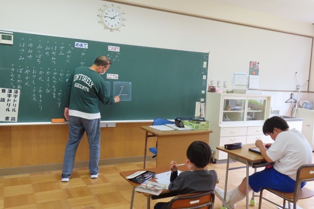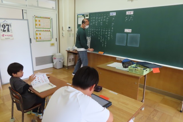 1年生が国語で「か」「み」を学習していました。教室では、「か」のつく言葉をたくさん出していました。隣で6年生の児童が上手にヒントを出していました。1年生の子が知っていそうな、好きそうな言葉を一緒に考えていました。1年生にしてみれば「ぼくも こんなおにいさんになりたいな!」と思って(目標)いることでしょう。