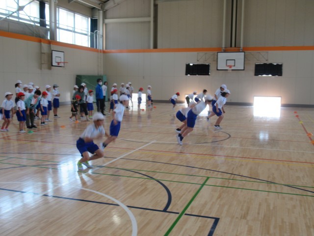 カッコいいノリノリな音楽にあわせてラインジャンプを思う存分楽しみました。みんな手拍子しながらリズムにのって楽しく体を動かして、朝から笑顔いっぱいになりました。あっという間に楽しい時間は過ぎてしまいましたが、次回(レベルアップバージョン)をとても楽しみにしています。