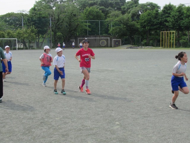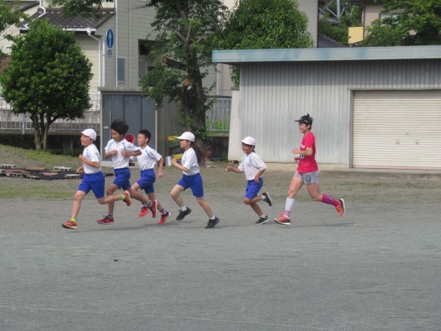 あいさつ運動を終えた本校担当の学校運営協議会委員さんが、朝マラソンで一緒に走ってくれました。開始前に委員さんがウォームアップをしていると、自然と一緒に走り出す子供たちの姿が。開始後も委員さんの「がんばれ!」ということばに、子供たちは力をもらって走っていました。