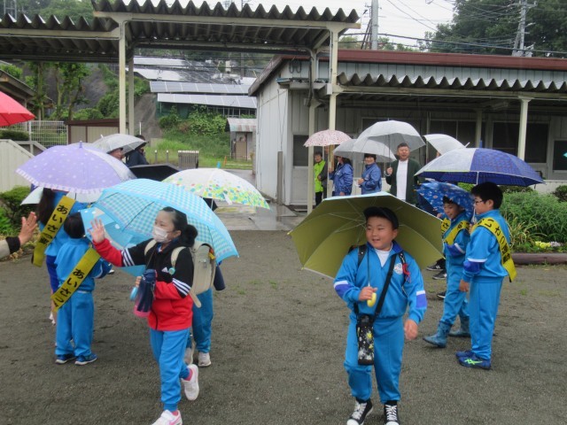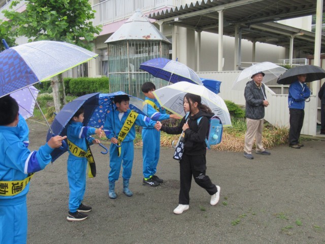 あいにくの雨模様でしたが、保護者、地域の皆様と児童の元気なあいさつ、スマイルハイタッチで、みんなの心は晴れの一日を迎えました。このあいさつ運動は今日が最終日でしたが、この期間、本当に多くの保護者の方々、地域の方々にお世話になり、ありがとうございました。また、日々、地域の中では、子供たちの安全を見守りながらあいさつなどの声かけをしてくださる地域の方々が大勢いらっしゃいます。あらためて感謝申し上げます。今後ともどうぞよろしくお願いいたします。