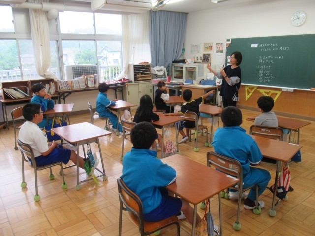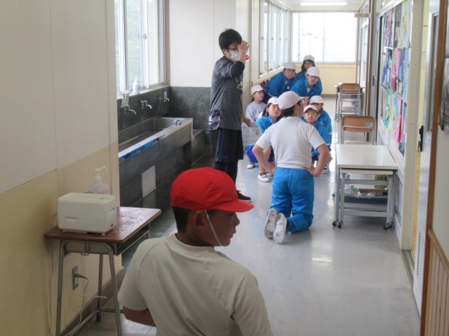 3校時に今年度初めての避難訓練を行いました。今回は地震を想定しています。緊急放送に合わせ、机の下に身を隠す訓練を実施した後は、雨が降っていたため避難経路の確認などを屋内で行いました。低学年は「お・は・し・も」の確認や、もし先生がいないときにどのように行動すればよいかなどについて話し合いました。高学年は、緊急地震速報の着信音を実際に聞いて、その後どのように行動すればよいか考えたり、校舎内を歩いてそれぞれの場所における避難方法を確認したりしていました。自然災害はいつ発生するか分かりません。いざというとき、今日の訓練を生かして安全な行動をとれるようにしていきたいと思います。