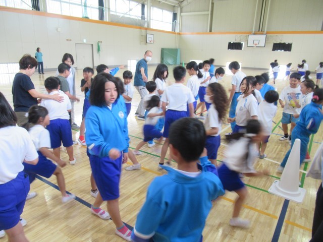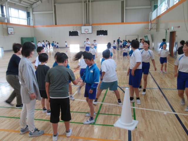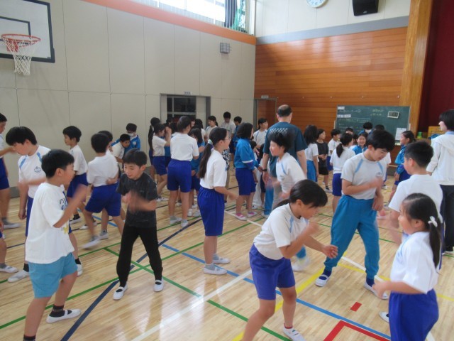 児童会本部役員が考えた遊びです。みんなで仲良く楽しく大盛り上がりでした!終了後「アンコール」の嵐で、2回戦楽しみました。