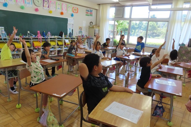今日は児童の大好きな動物の名前を英語で言っていました。先生が出すクイズに楽しそうに答えていました。よくきいていると、驚き、感心ばかりです。英語での言い方がとても上手です。特に低学年の子供たちは、ALTや先生の話す英語をよくきいて、よくまねするのがとても上手なんです。日本語の言い方との違いもおもしろいなと思っています。たくさんの英語をきかせたいと思っています。