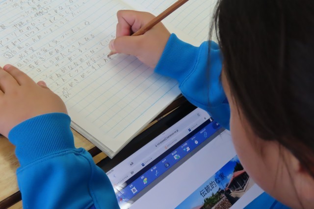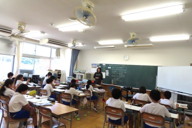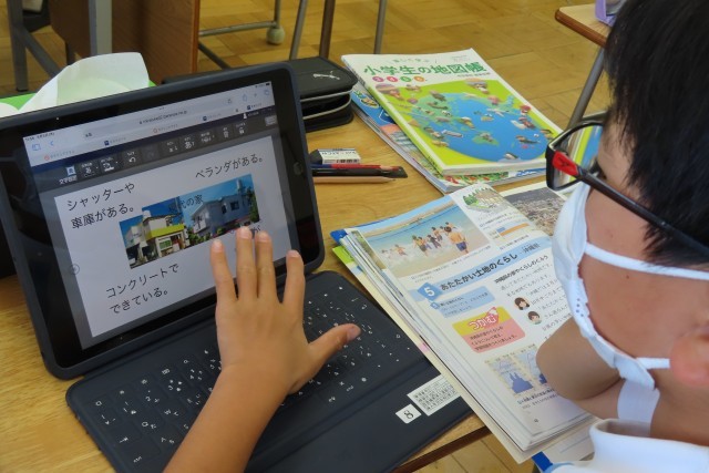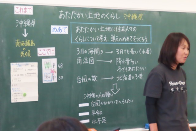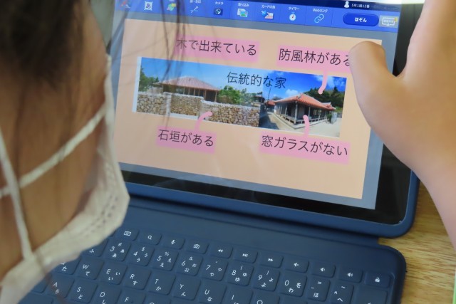 「あたたかい土地のくらし」の学習に入りました。今日は、沖縄県の伝統的な家と現代の家を見て、気が付いたことを出し合っていました。5年生自身の知識や経験等から、沖縄県について知っていることをつなげて考えていました。群馬県とはちがう家のつくりが、沖縄県の気候を考えたものであることに気付き、「ここでは」の学習への興味・関心が高まったようです。他にも暮らしの工夫があるのではないか?と問いをもつことができたようです。