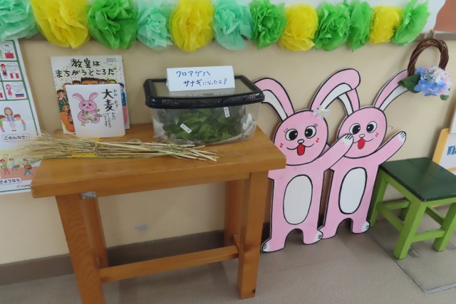 (写真4~5枚目)先日、地域の方にいただいて、全校みんなで大切に育てているクロアゲハがみんな、さなぎになりました。成虫になるのを静かに見守っているところです。またもう一人、稲穂の会(保護者)の方から大麦をいただきました。児童は「これが、おおむぎなのか・・・」と触っていました。ありがとうございます!