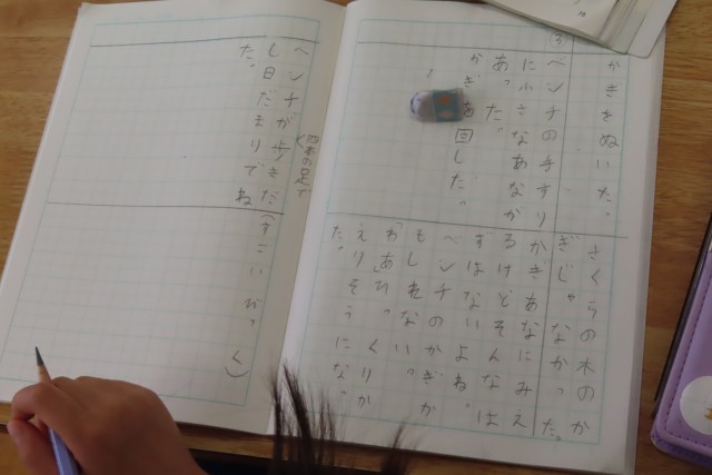 「まいごのかぎ」3年生の大好きな学習です。りいこになりきってりいこの気持ちを考えたり、教科書をもう一度読み返して文中の言葉からりいこの気持ちを読み取ったりしています。読み取り表に書くときは、文中に使われている言葉を大事にして書くことも学んでいます。不思議な出来事いっぱい!気持ちの変化がいっぱい!つまった物語が大好きです。「物語を読むのっておもしろいな」とたくさん感じながら学習を進めています。