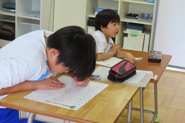 1時間目、1年生も6年生も国語の学習から今週のスタートです。1年生は「ひゃ」は「ひゃくのひゃ」拗音の学習をしていました。6年生は漢字の学習です。「これまで」学習した漢字の一覧が教室に「つなぎ教材」(学習のヒント)として掲示されています。「むずかしいなあ」というものがあっても、あきらめない「やる気いっぱい」です。なので、いつも「学びいっぱい」です。