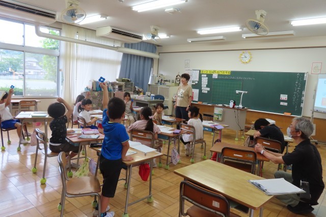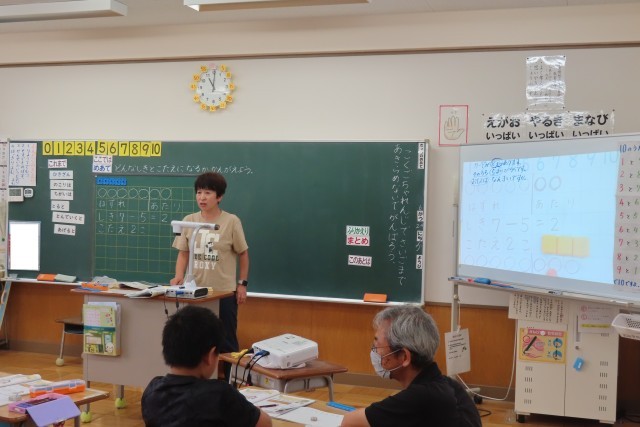 教室に入るととても楽しそうでした。先生が楽しそうなくじ(全部で7つ)を持っていました。はずれが5つ。あたりは?みんなで実際にやってみてよく分かりました。今日は「7-5=2」のひきざんができるようになりました。しっかり式に表して答えを出せるようになりました。
