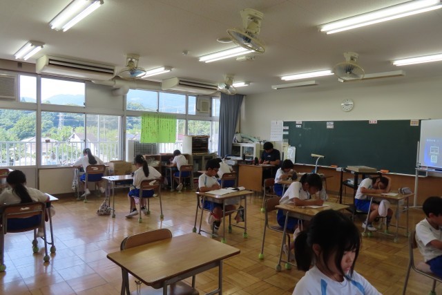 先週の「漢字チャレンジ」に続いて、今日は「算数チャレンジ」の日です。みんな真剣に自分の力試しにチャレンジ中です。最後まであきらめないで考えている姿に「やる気いっぱい」を感じました。満点とれれば最高ですが、自分の力を知って素直に受け止めて、自分ができなかったところをできるようにすることのほうが大事です。今回のチャレンジをきっかけにしてさらに頑張ってもらいたいです。
